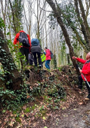 10 randonneurs sont chaussés pour effectuer 7,5 km. Eh oui, le circuit est raccourci à cause des chemins ou sentiers boueux et humides.